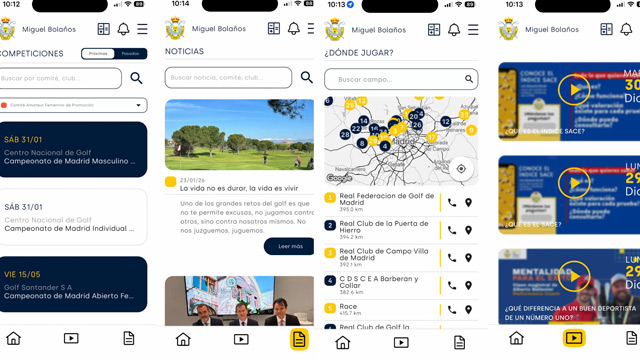 La Real Federación de Golf de Madrid impulsa su compromiso con la innovación y la atención al federado con el lanzamiento de su nueva aplicación móvil. Esta herramienta, diseñada para convertirse en el acompañante indispensable de cada jugador en la Comunidad de Madrid, ya está disponible de forma gratuita para dispositivos iOS y Android.