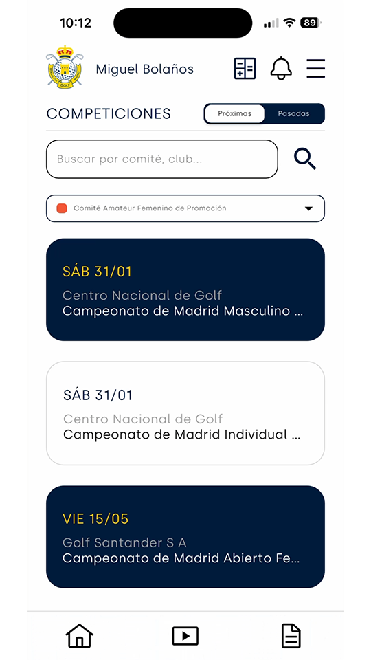 • Gestión de Torneos: Consulta de calendarios, horarios de salida y clasificaciones en tiempo real. Los usuarios podrán inscribirse a competiciones directamente desde su terminal.