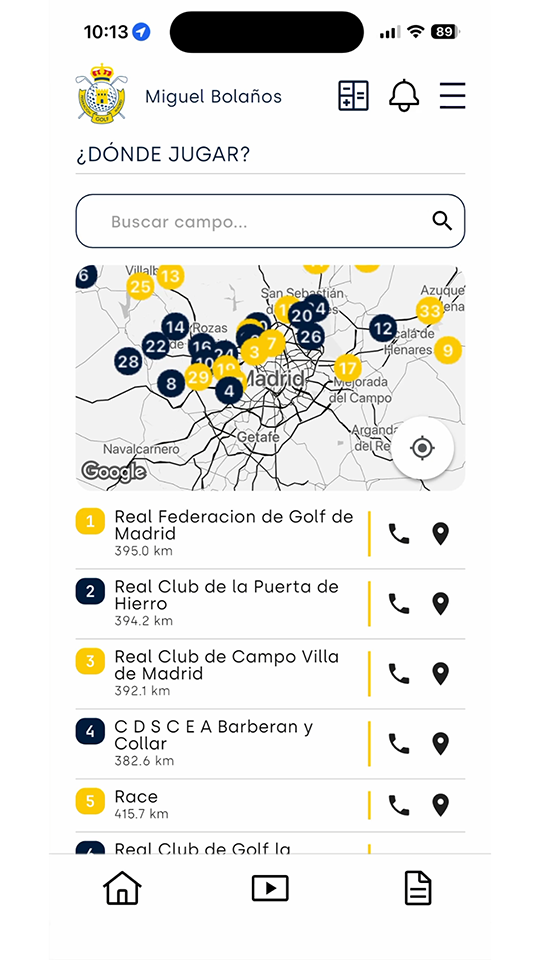 • Información Federativa Actualizada: Acceso inmediato a noticias, circulares y eventos relevantes del golf madrileño, además de las ventajas con terceros que ofrece estar federado.
