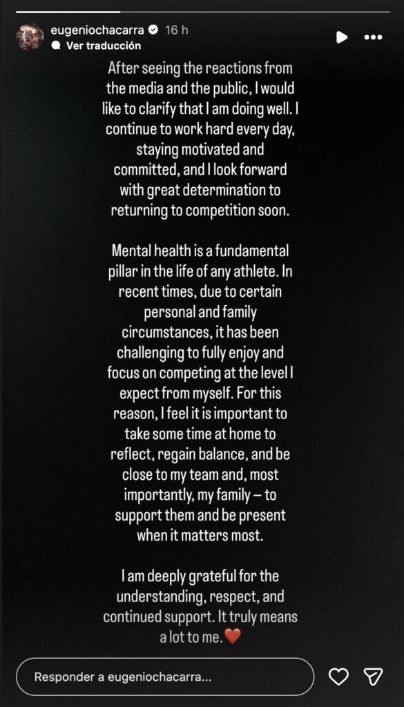 Necesito tiempo para reiniciar, sanar y cuidar mi mente para poder volver más fuerte». – Eugenio López Chacarra